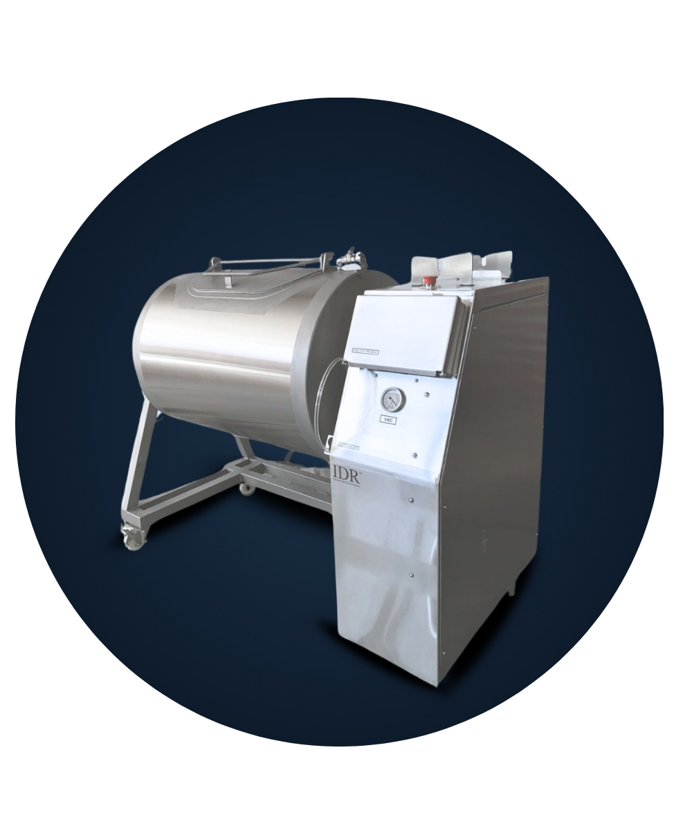 Tanques marinadores de Vacío convenciona IDR Tulum. Diseñados para mejorar el sabor, la suavidad y la calidad general de los productos cárnicos. Distribución homogénea de la salmuera y ablandamiento efectivo de los tejidos. Solución integral para añadir valor y distinción a sus productos cárnicos.