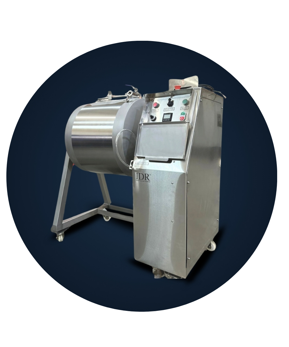 Con capacidad de 1,000 kilos por proceso cuenta con sistema de vacío o pulmoneo configurables que permiten agregar sabor a las fibras de la carne garantizando marinados uniformes, aumentando su volumen hasta un 40% más de jugosidad y sabor.