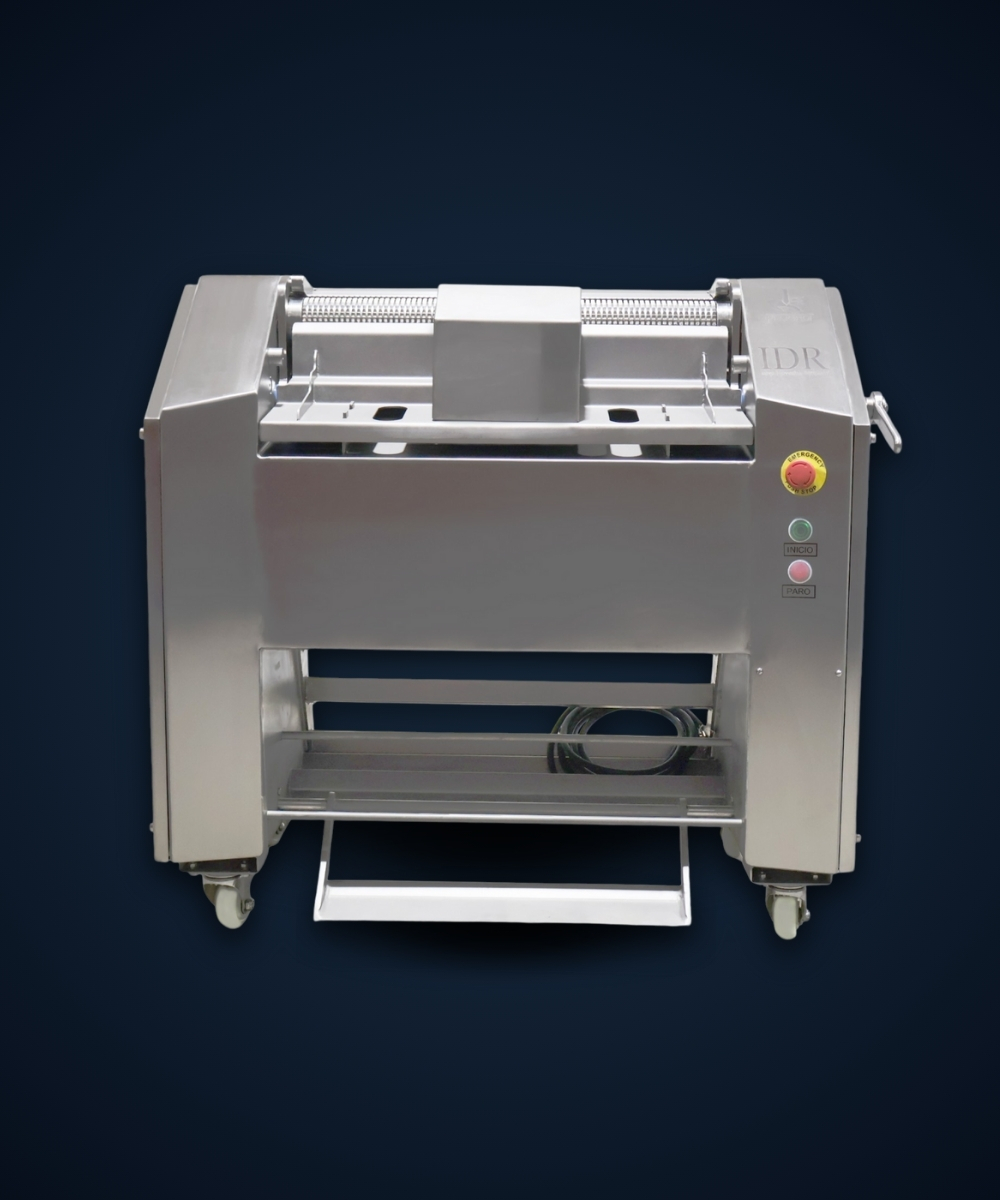 El grosor de retirado es totalmente ajustable mediante calibrado y permite dejar o quitar la grasa debajo del cuero según sea configurado. Rodillo en acero inoxidable anticorrosivo. Fácil limpieza y acceso, cuenta con guardas desmontables y su construcción es completamente en acero inoxidable.